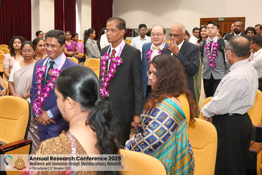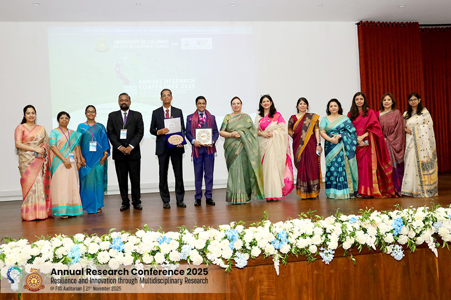The Faculty of Graduate Studies, University of Colombo held its Annual Research Conference (ARC-2025) in collaboration with Sri Ram College of Commerce, University of Delhi on November 21, 2025, at the faculty premises. This conference was themed Resilience and Innovation through Multidisciplinary Research, bringing together prominent academics, international scholars, and postgraduate students. A total of 90 abstracts were selected for presentations under 11 tracks that encompassed various multidisciplinary fields. The Vice Chancellor, Professor Indika Karunathilake, graced the inaugural ceremony as the chief guest and commended the Faculty of Graduate Studies for successfully hosting a conference with international participants.